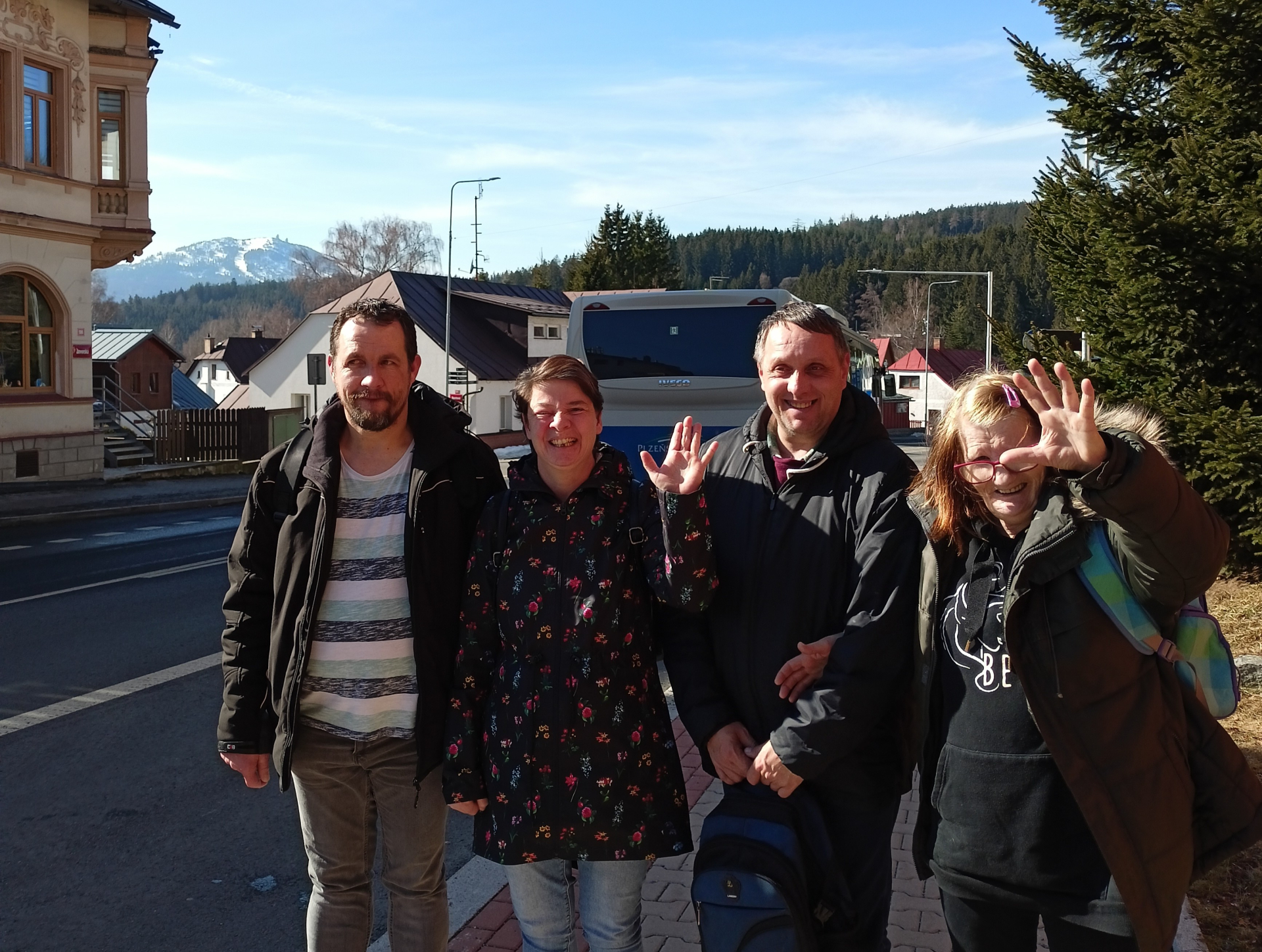 11.3.2026 Někteří naši uživatelé pracují v našem zařízení v prádelně, ve skleníku nebo i pro obec Mačkov. A jako každý pracující mají nárok na dovolenou. Čtyři z nich se vydali na pár dnů na Šumavu. Ubytování si našli v Sušici a pak jen užívali dny volna. Jezdili na výlety, chodili na procházky, navštívili muzeum, dokonce plavecký bazén. Prošli si celou Sušici, která se jim, mimochodem, moc líbila a to nejen od kaple sv. Anděla Strážce a také vyrazili do Železné Rudy. Nechyběly ani návštěvy dobrých restaurací a kaváren. Prostě dovolená jak má být. Však si to také všichni zasloužili.